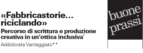BUONA PRASSI – Progetto Integrazione Fabbricastorie… Riciclando, di Addolorata Vantaggiato (AUTRICE DI QUESTO SITO) presentato all’8° Convegno Internazionale dell’Integrazione scolastica e sociale, Erickson, Rimini 2011.